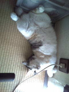 珍しく今日は俺の部屋で腹出し熟睡ww。